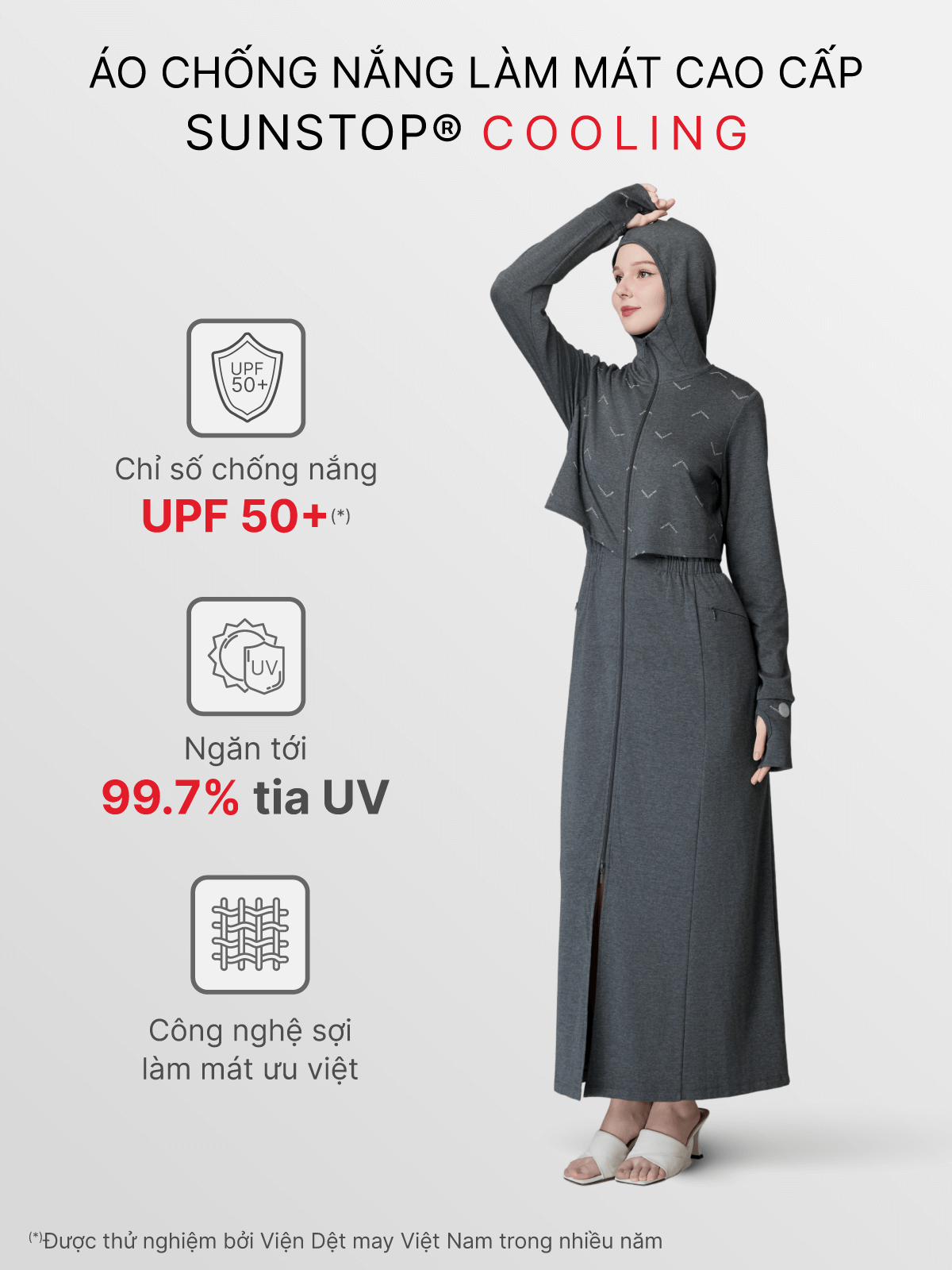 Áo chống nắng mũ liền chun eo SunStop Cooling