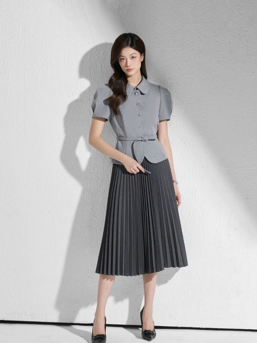 - Áo ký giả dáng ôm, cổ đức, cúc đính máy kèm cùng dây lưng rời.Có thể kết hợp với nhiều dáng quần âu hoặc chân váy khác nhau.