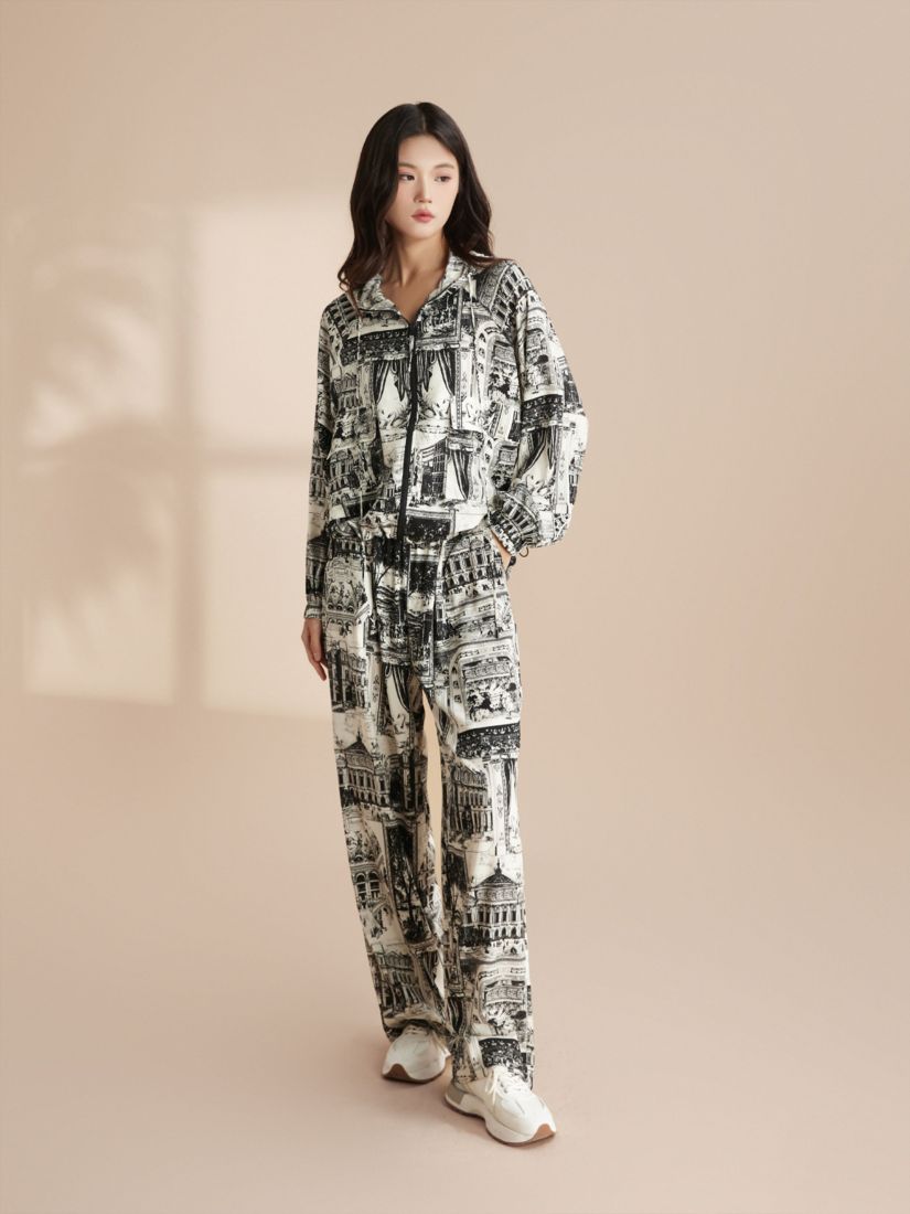 - Quần ống suông dáng dài, cạp chun với hoạ tiết mang dáng vẻ thanh lịch, tinh tế. Chất liệu lụa tự nhiên sang trọng, dễ dàng kết hợp cùng các loại áo sơmi và phụ kiện như giày sneakers.