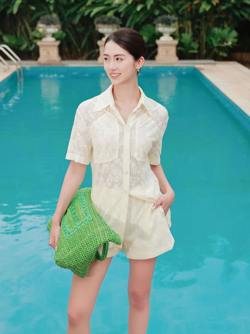 - Quần shorts 2 lớp dáng ống suông ngắn, cạp chun sau, khóa sườn, móc, túi dọc. Thiết kế cạp chun phía sau, mang đến cảm giác thoải mái và linh hoạt trong từng chuyển động. Chất liệu ren mỏng nhẹ, thanh thoát tạo nên vẻ ngoài nữ tính, quyến rũ mà vẫn rất thoáng mát, lý tưởng cho những ngày hè nóng bức.